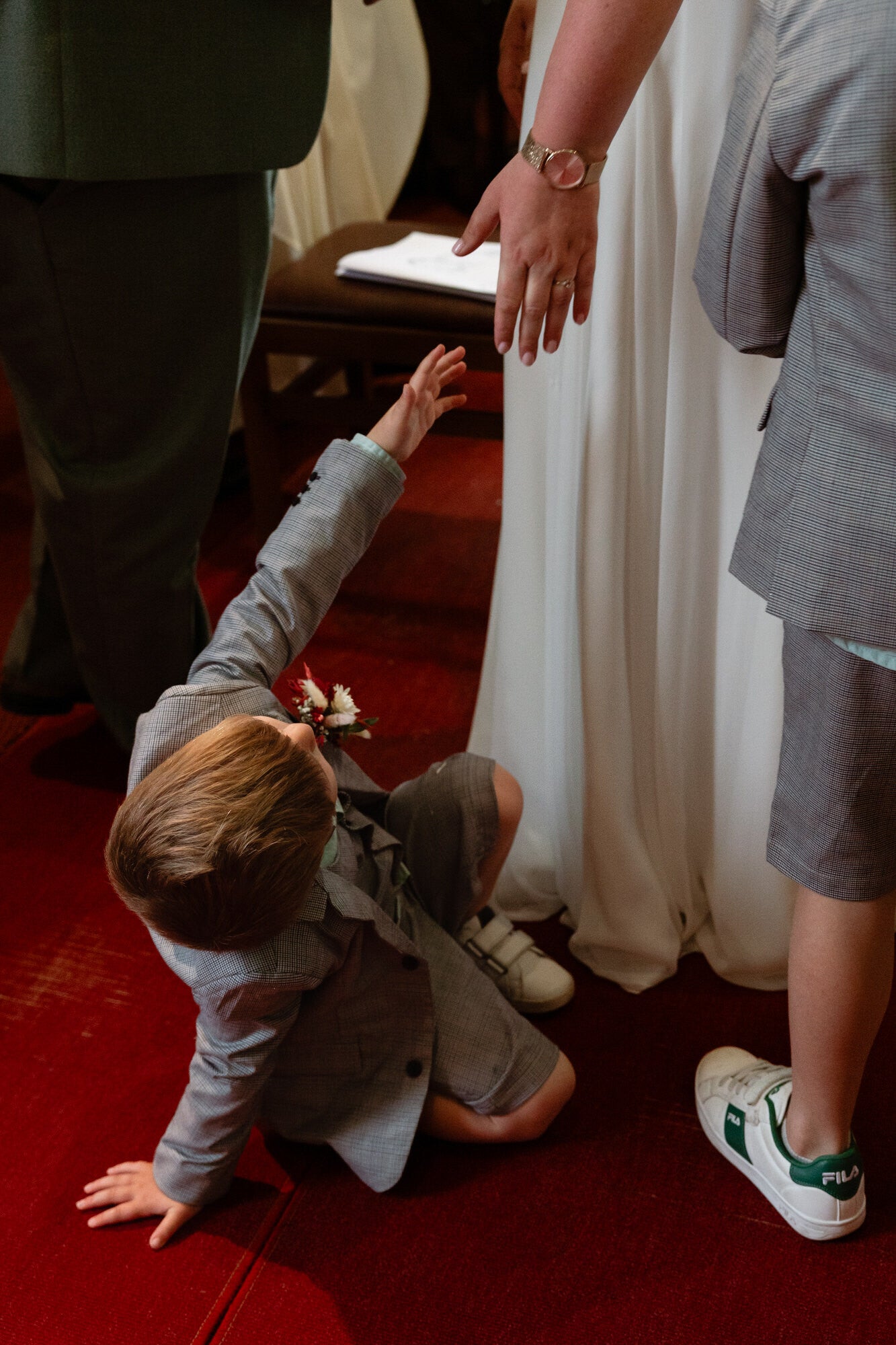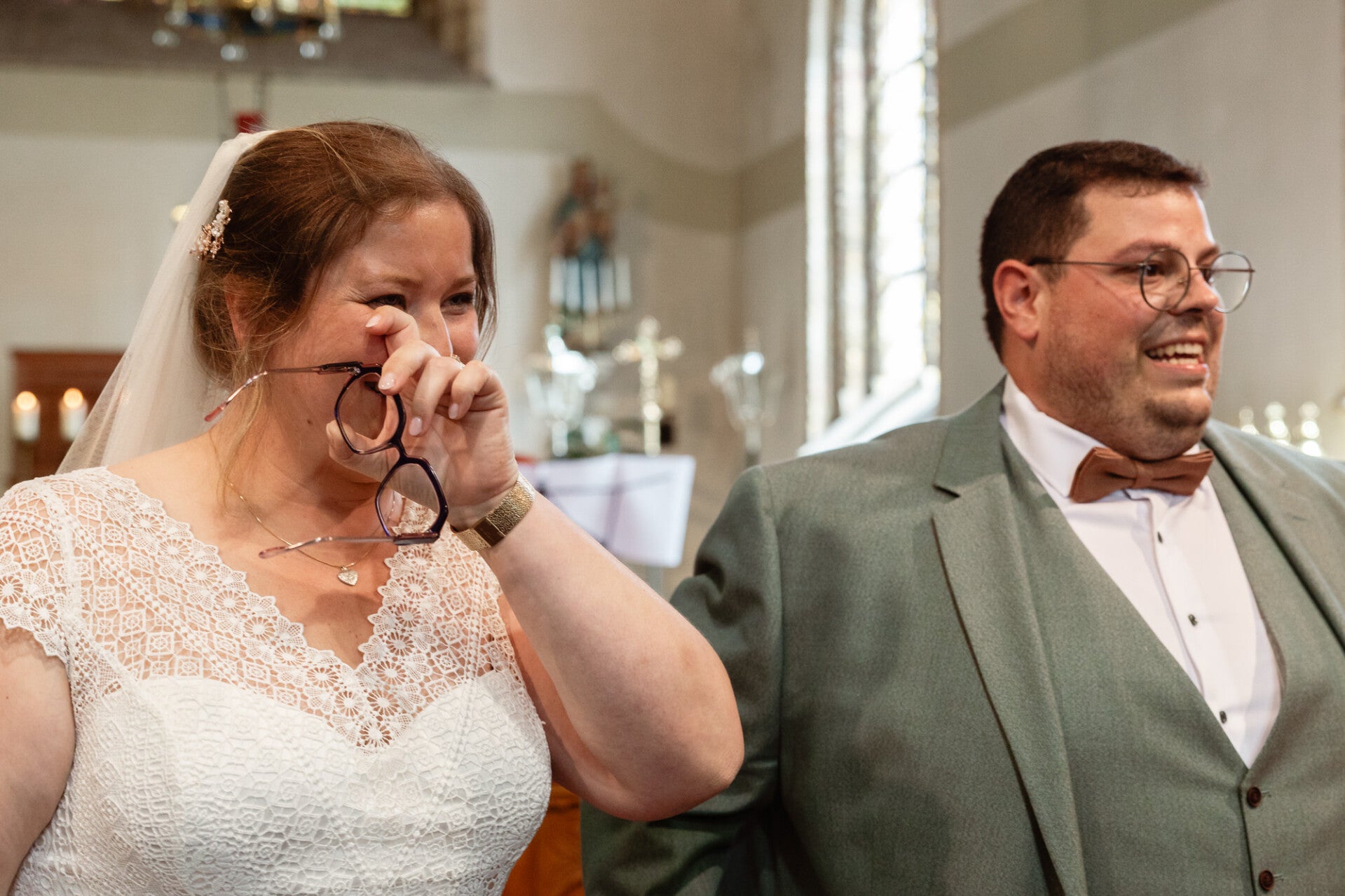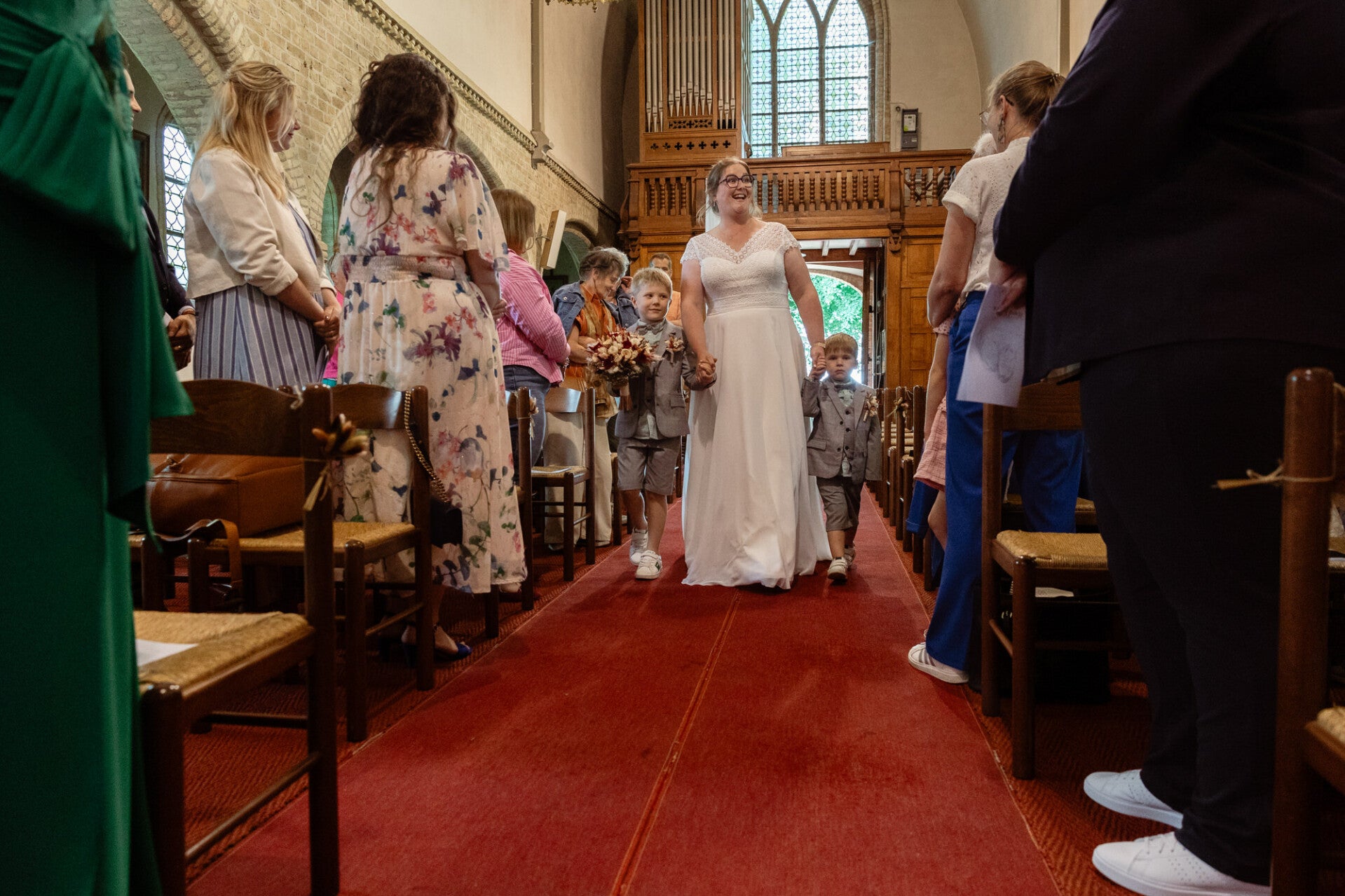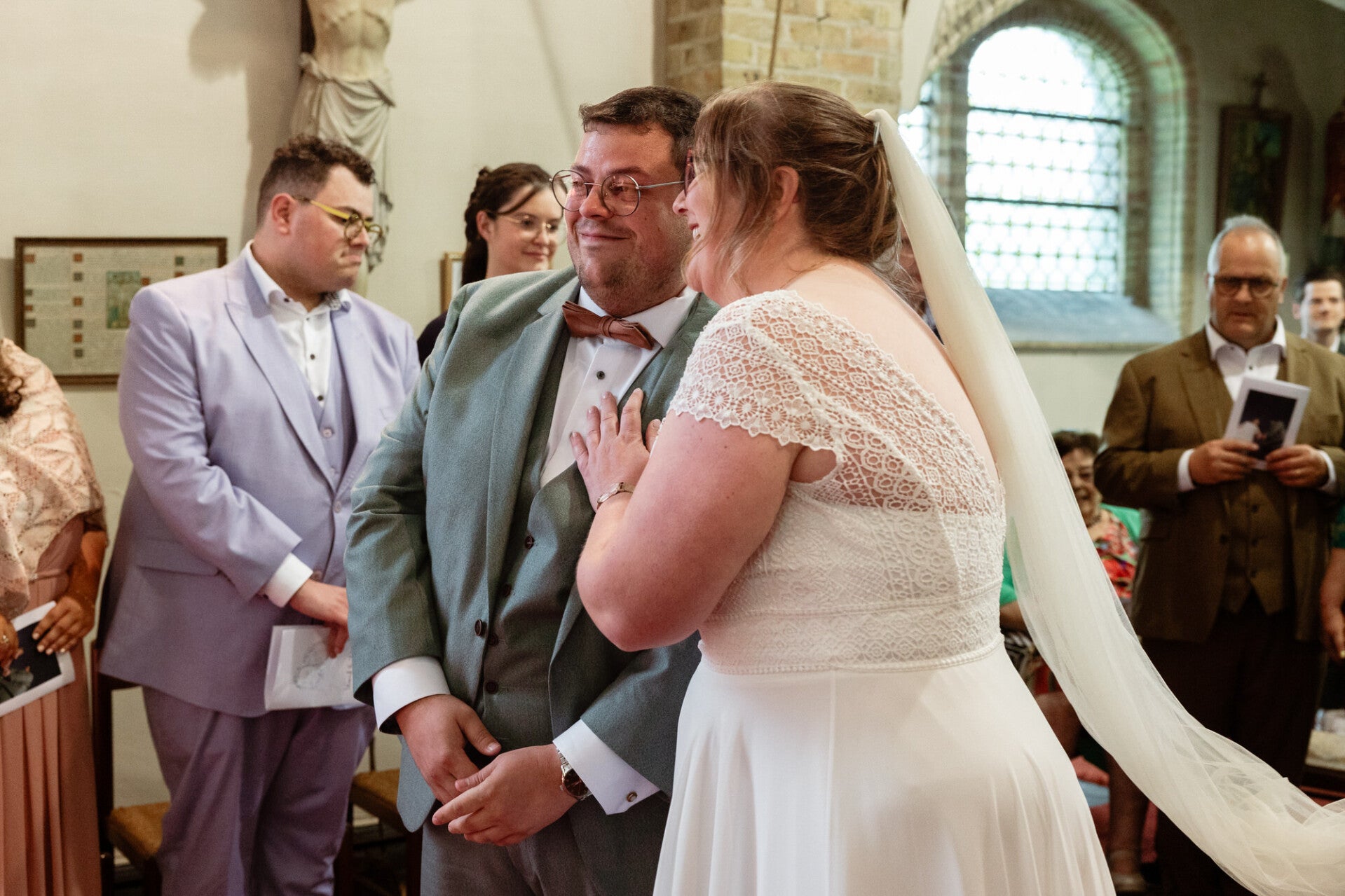 Vervolgens was het tijd voor het kerkelijke deel in Sint-Jacobskapelle. Voor hen een plek die voor altijd in hun hart zit. Het was een moment van pure emotie, dat je bijna voelt trillen in de lucht. Toen de kinderen de bel luidden, en tijdens het uitspreken van de geloftes, moest ik zelfs een traantje onderdrukken. Het was zo oprecht, zo echt. Ik zag die liefde in alles terugkomen: de blik, de glimlach, de tranen. Zo mooi, dat woorden tekortschieten.